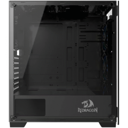 The side is Transparent Tempered Glass Side Panel for Direct Viewing of Internal System. USB Control Panel and Top Power Button for User-friendly, Including Top/Bottom Anti-Dust Mesh Cover, 3x central illuminated 12cm RGB Fans on Front panel