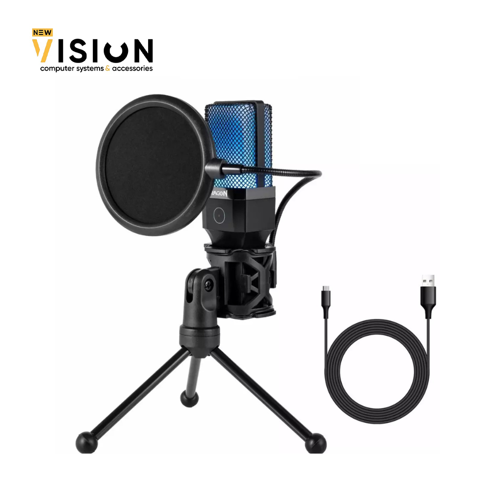 The Redragon GM212 Adne is a high-performance microphone designed for gamers, streamers, and content creators. Equipped with vibrant RGB lighting, it enhances your setup’s aesthetics while delivering crisp, professional audio quality. The built-in pop filter ensures distortion-free voice capture, perfect for live streaming or recording sessions. With a fast and reliable Type-C connection, the GM212 provides excellent sound transmission without delays. Its cardioid polar pattern focuses on capturing your voice while minimizing background noise, making it ideal for noisy environments. Whether you’re gaming, podcasting, or creating videos, this mic elevates your audio experience to the next level.